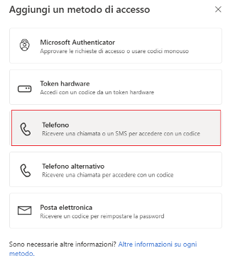 - A seguito della verifica del numero di telefono, il nuovo metodo di autenticazione apparirà tra i metodi di autenticazione disponibili per il proprio account.